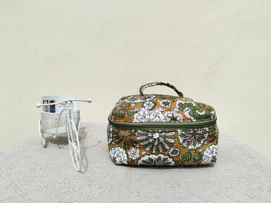 Large Quilted Makeup Bag Cosmetic Vanity Case / Cotton Travel Storage Bag / Opens Flat for Easy Access Toiletry Bag Bridal Shower Gift - 1