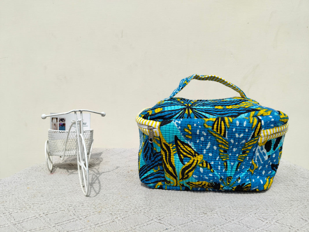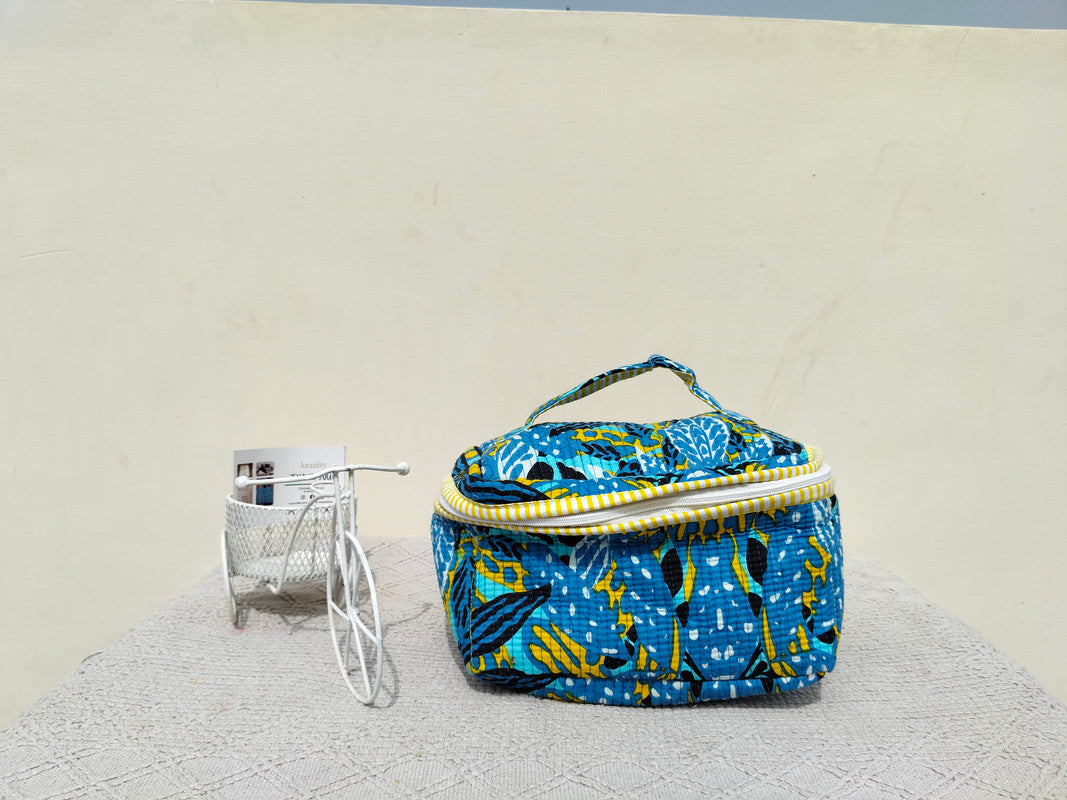 Large Quilted Makeup Bag Cosmetic Vanity Case / Cotton Travel Storage Bag / Opens Flat for Easy Access Toiletry Bag Bridal Shower Gift - 3