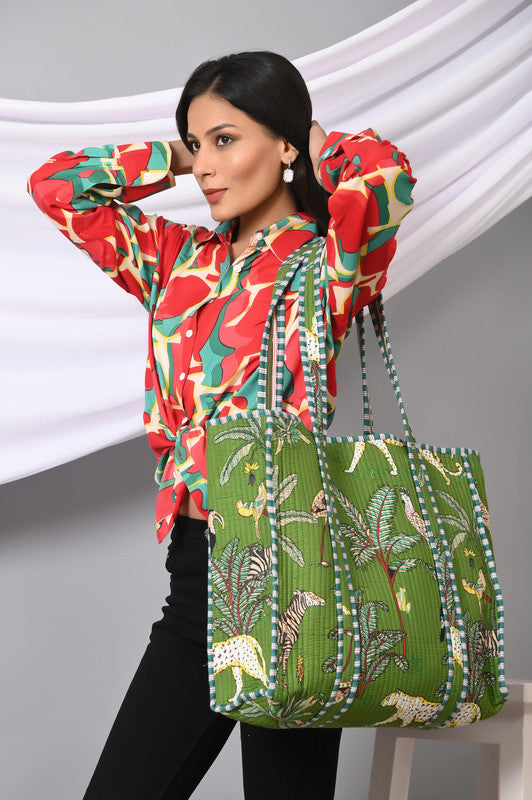 Quilted cotton handprinted reversible large floral patch work stripe tote bag eco friendly Sturdy Grocery Shopping Artist Boho - 25