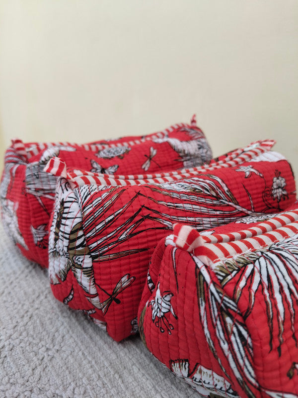 • This Beautiful Hand Block Printed Quilted Cotton Cosmetic Bag Set is the perfect combination of style and function. Crafted with intricate vertical stitching on the exterior, each bag features a durable zipper closure and a waterproof inner plastic lining—ideal for keeping your essentials safe and organized on the go.