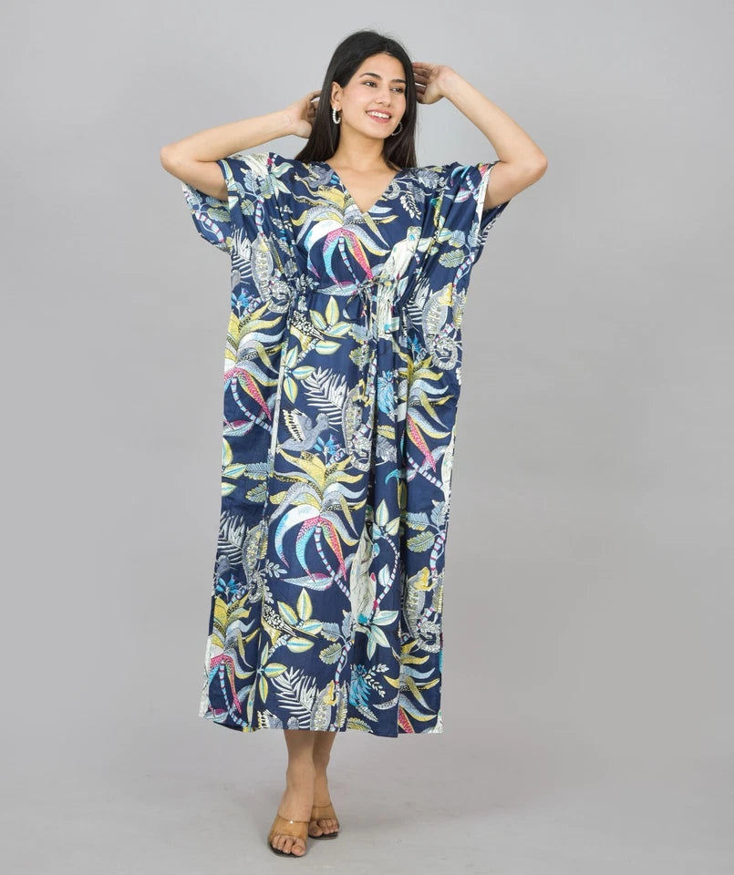 Cotton Kaftan, Indian Floral Kaftan, Long Caftan,Dress For to be Moms, Beach Cover up, Sleepwear, Indian Kaftan, Maxi Dress,Bikini Cover Up - 3