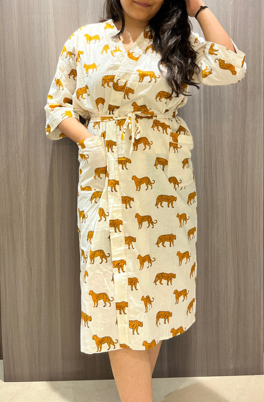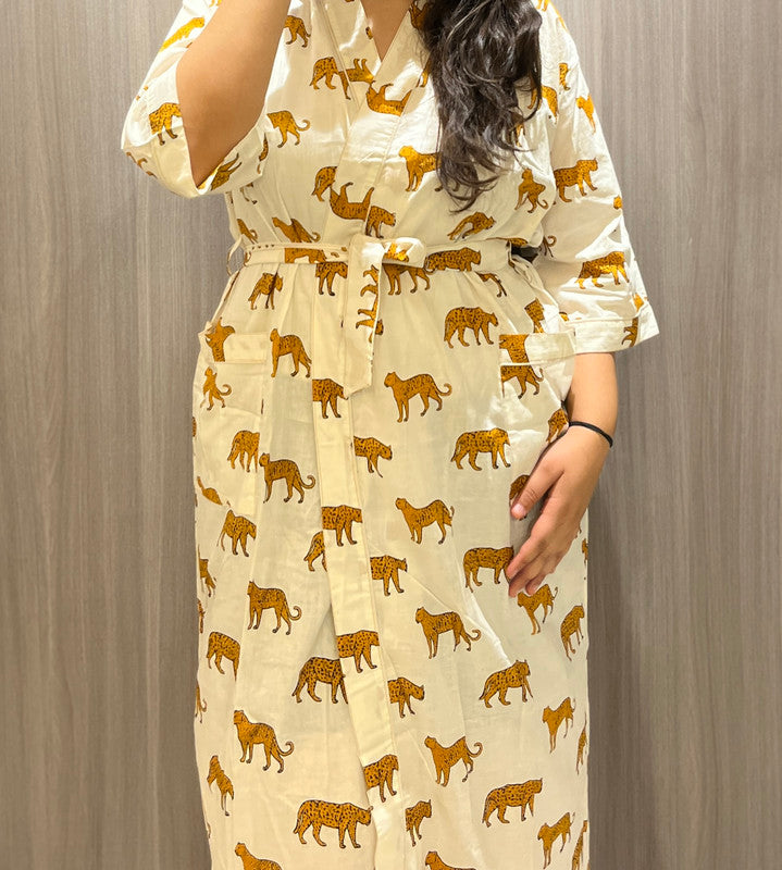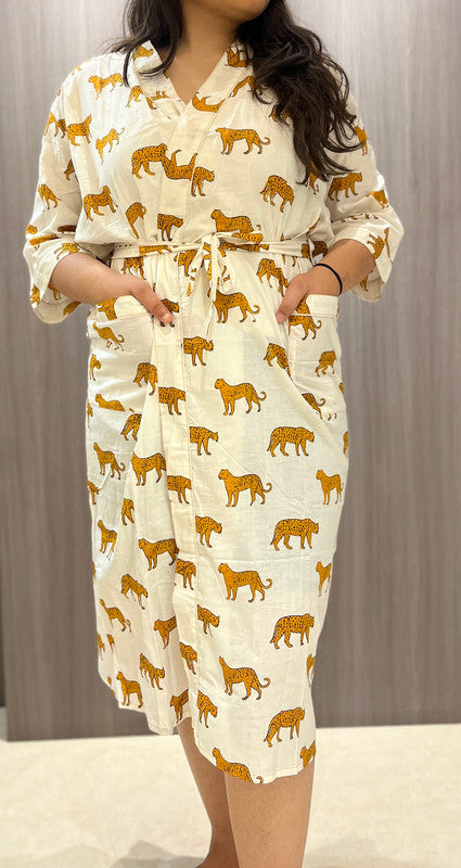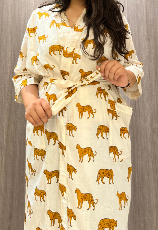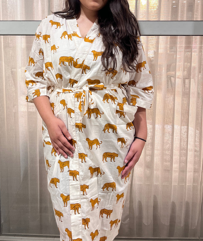 Handmade Indian Cotton Kaftan - Black Floral Hand Block Printed Caftan Dress - 1