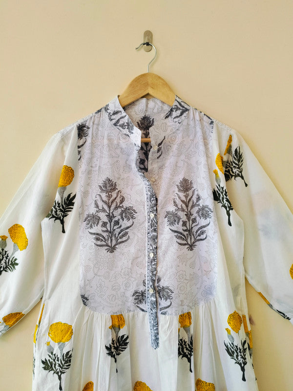 Handmade Stripes Tiger Midi Dress - Cotton Summer Boho Dress with Deep V-Neck & Block Print Design - 2