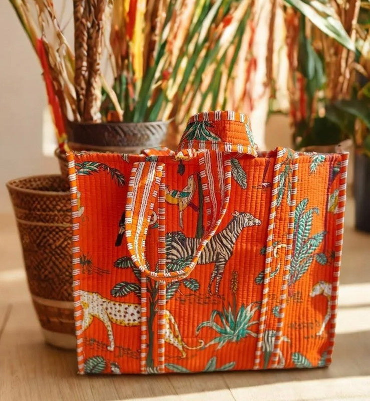 Women Shopping Bag, Cotton Quilted Tote Bag, Indian Handmade Bag, Party Bag, Large Market Bag, Shoulder Bag, Beach Bag, Eco Friendly Tote - 7
